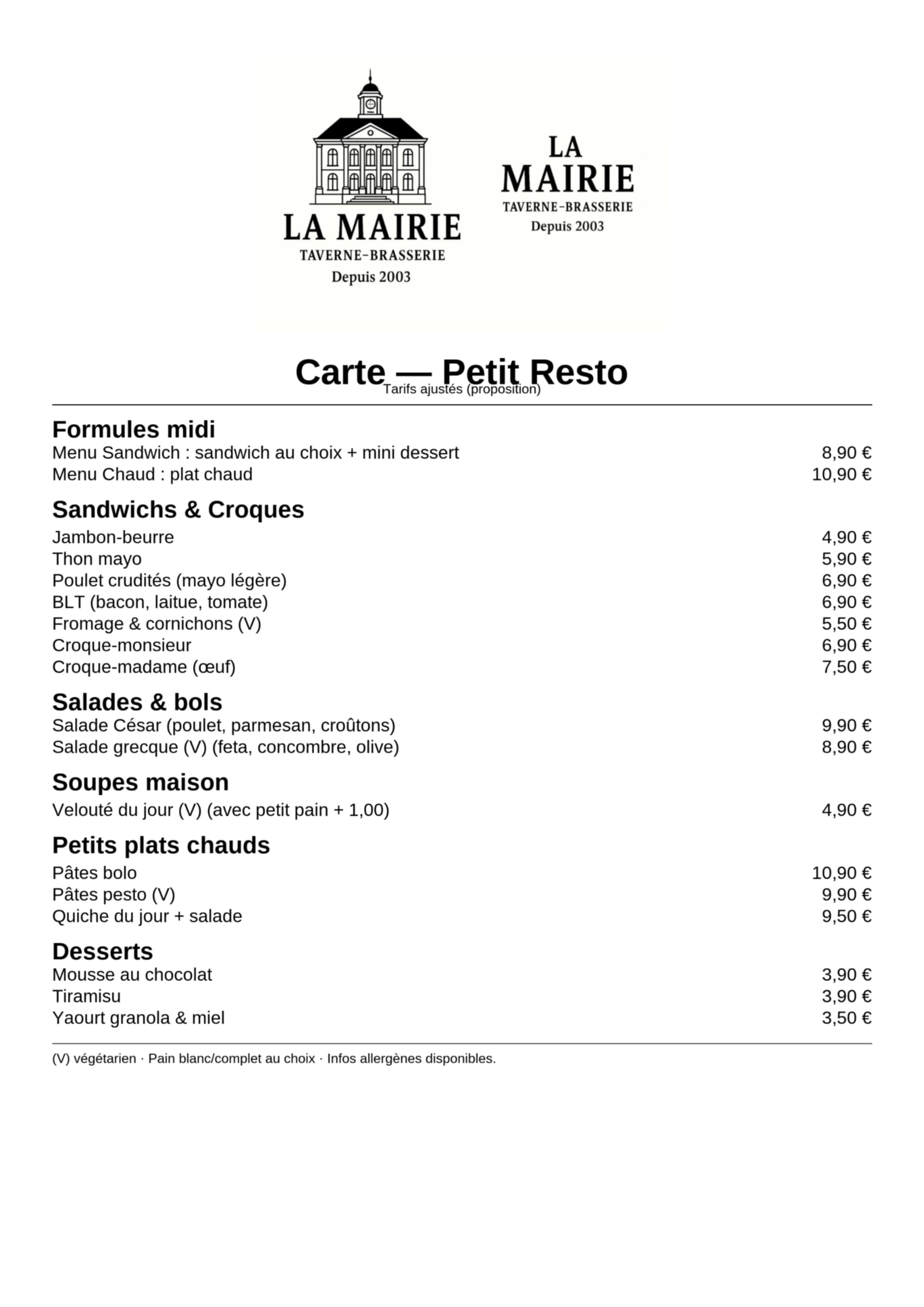 À La Mairie, on vous propose une petite restauration généreuse et authentique :